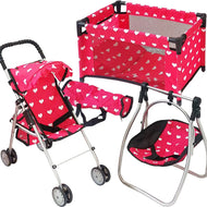 3 in 1 Baby Doll Furniture - Pink Hearts