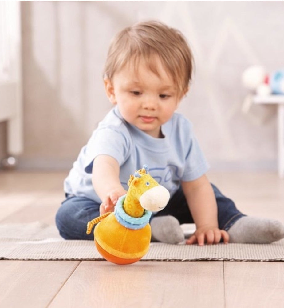 Say hi to the newest addition to our Roly Poly family - the giraffe! When nudged, the roly-poly figures happily move to and fro without tipping over... all the while, making entertaining tinkling noises. Includes two textured teething rings. All babies will be thrilled while their motor skills are trained.
