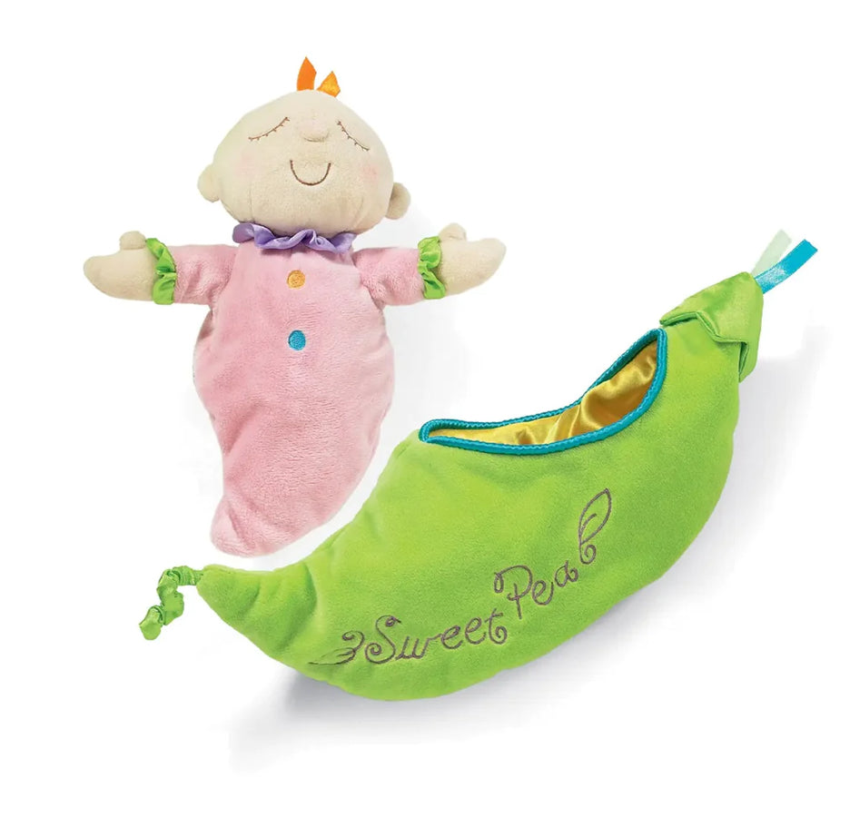 This super soft snuggle pal comes in her own pod, a satin-lined peapod. Babies will love toting and tucking in their own adorable first baby doll. Fosters early development of nurturing skills. Snuggle Pods Sweet Pea encourages imaginative play and was named a Baby Talk editors pick for its whimsical design. Winner of an Oppenheim Toy Portfolio Award.