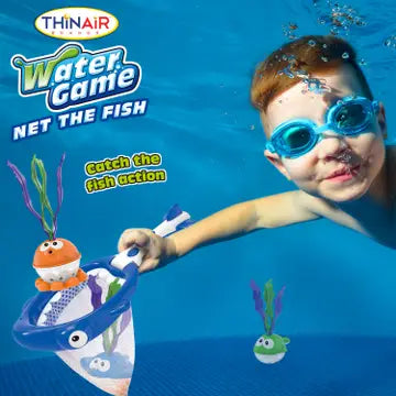 Net the Fish game Includes net and 3 fish friends 2-way net works by hand, or suction cup to bathtub/tile Catch the fish action Great for the tub, beach or pool Ages 3+